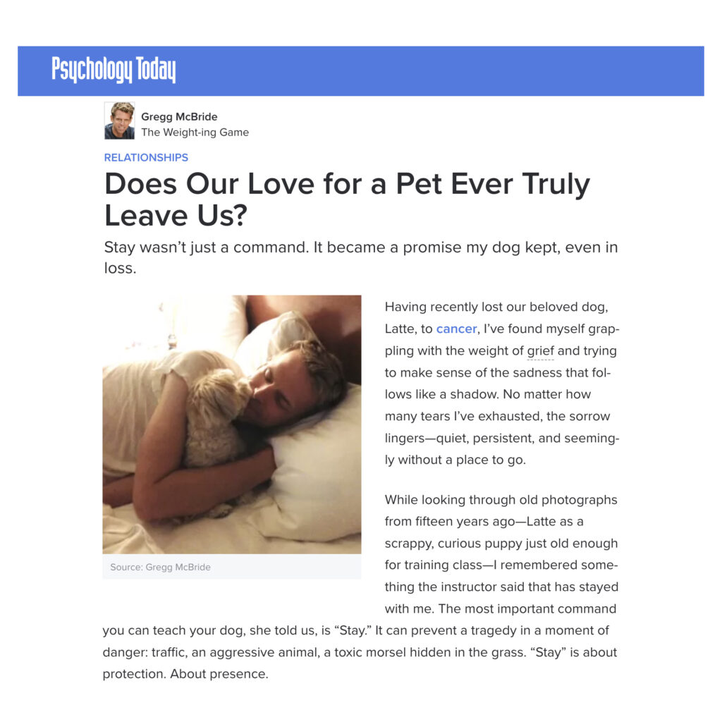 My Latest for Psychology Today: Does Our Love for a Pet Ever Truly Leave Us?